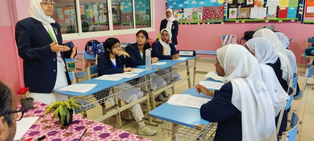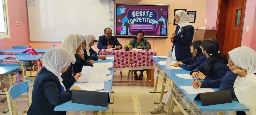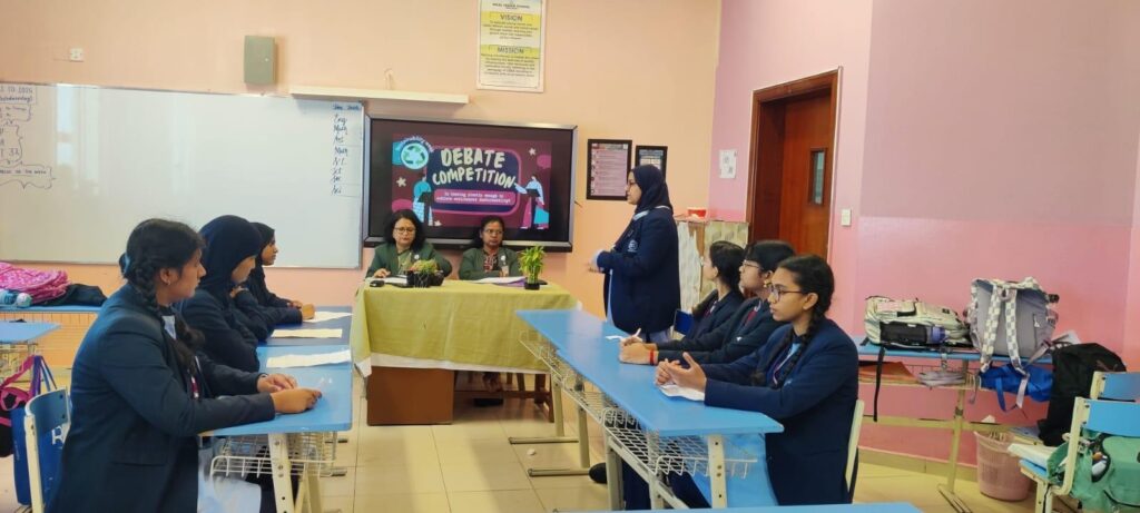 Senior students of Class 11 took part in an engaging debate competition where they discussed various environmental issues, demonstrating their critical thinking and communication skills. The debate sessions encouraged logical reasoning and awareness of global environmental challenges.