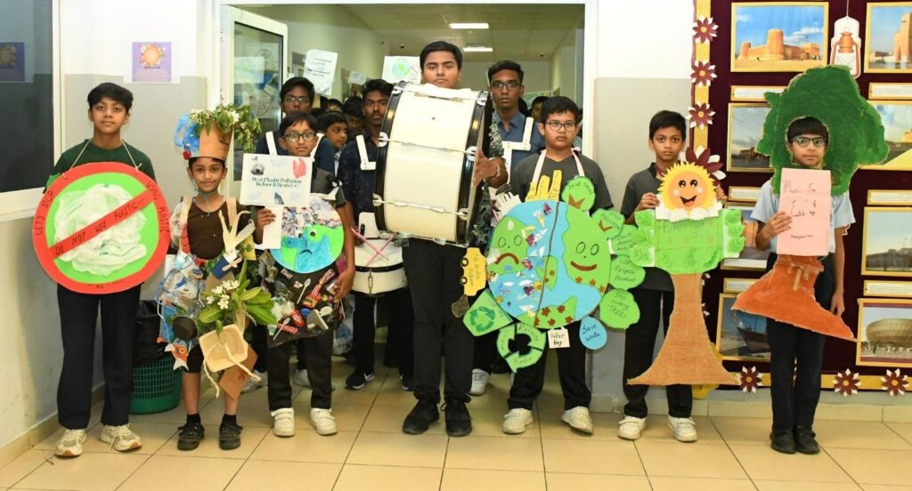 IIS CELEBRATES WORLD ENVIRONMENT DAY: Ideal Indian School marked World Environment Day with vibrant presentations and a variety of conservation awareness programs. The campus was abuzz with activities centered around the theme “Beat Plastic Pollution.” Students had a wonderful opportunity to gain insights and firsthand experience of different aspects of the environment through a range of organized activities. Conservation awareness programs were conducted across all sections during both the morning and evening sessions, reflecting the school’s commitment to promoting environmental responsibility.
