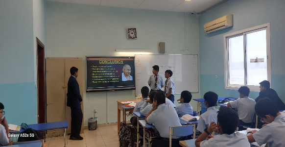 A tableau was performed during the 6th and 7th period by the students of grade 5th and 6th on the second floor. The tableau highlighted Mahatma Gandhi’s principles and their relevance in today’s world, emphasizing the values of honesty, peace, and selfless service.