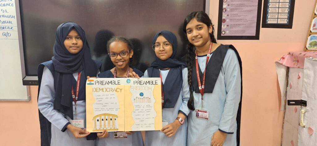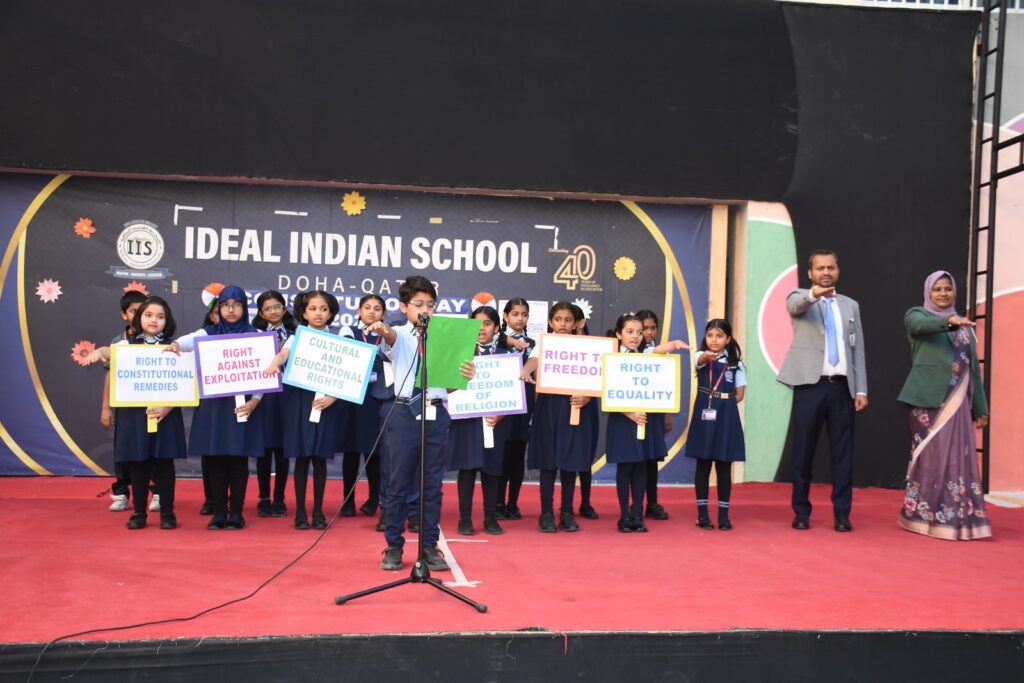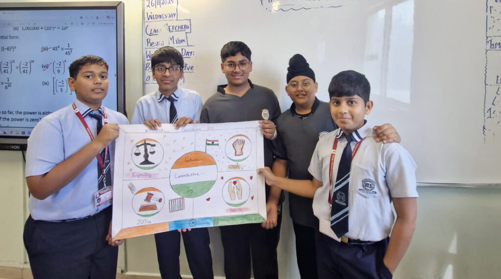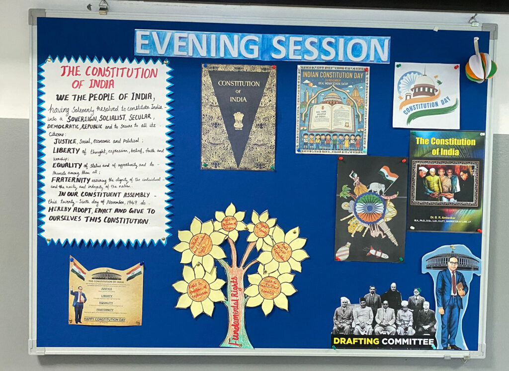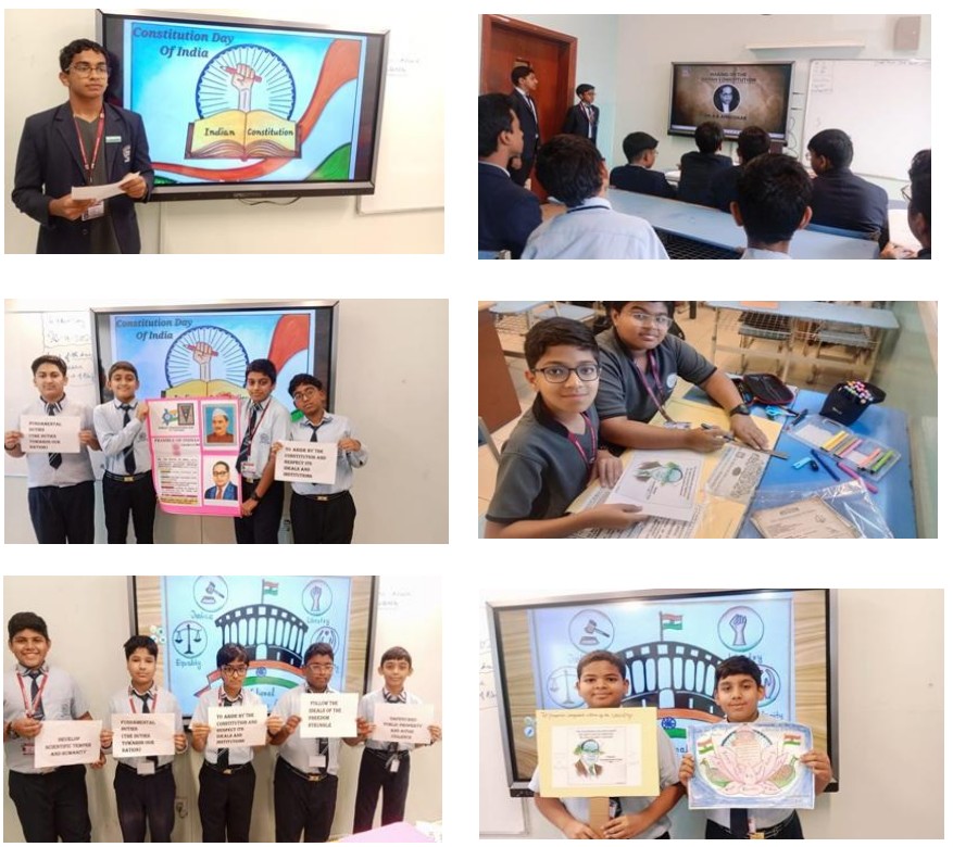 Ideal Indian School celebrated Constitution Day (Samvidhan Divas) with great enthusiasm. The event aimed to educate students about the significance of the Indian Constitution, its core values, and the invaluable contributions of the leaders who shaped it, with special recognition of Dr. B.R. Ambedkar, the architect of the Constitution. Engaging activities were conducted across all sections during both morning and evening sessions to help students understand fundamental principles such as justice, liberty, equality, and fraternity. These activities included a special morning assembly, colouring the national flag of India, writing and reading the Preamble to the Constitution, poster making, a Constitution quiz, and watching an introductory video on the Constitution of India. Through speeches, presentations, and interactive tasks, students developed a deeper understanding of their rights and responsibilities, fostering civic awareness and inspiring them to become responsible and conscientious citizens of the nation.Social Department of Ideal Indian School stays instrumental in the successful completion of this event.