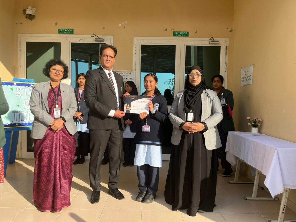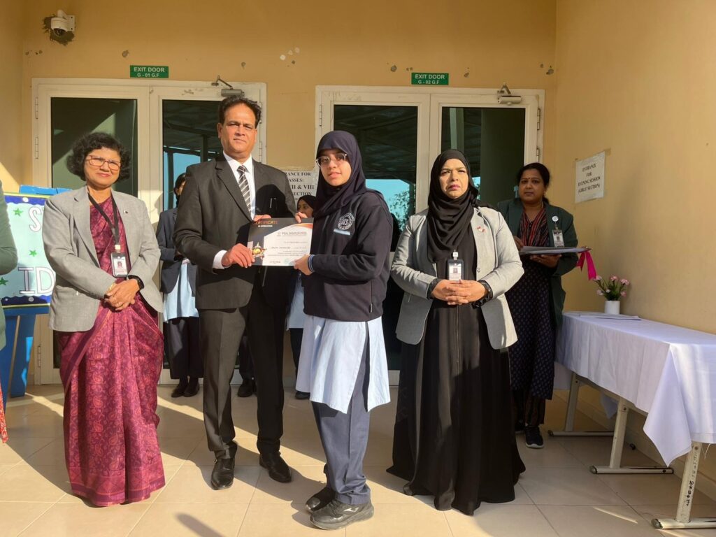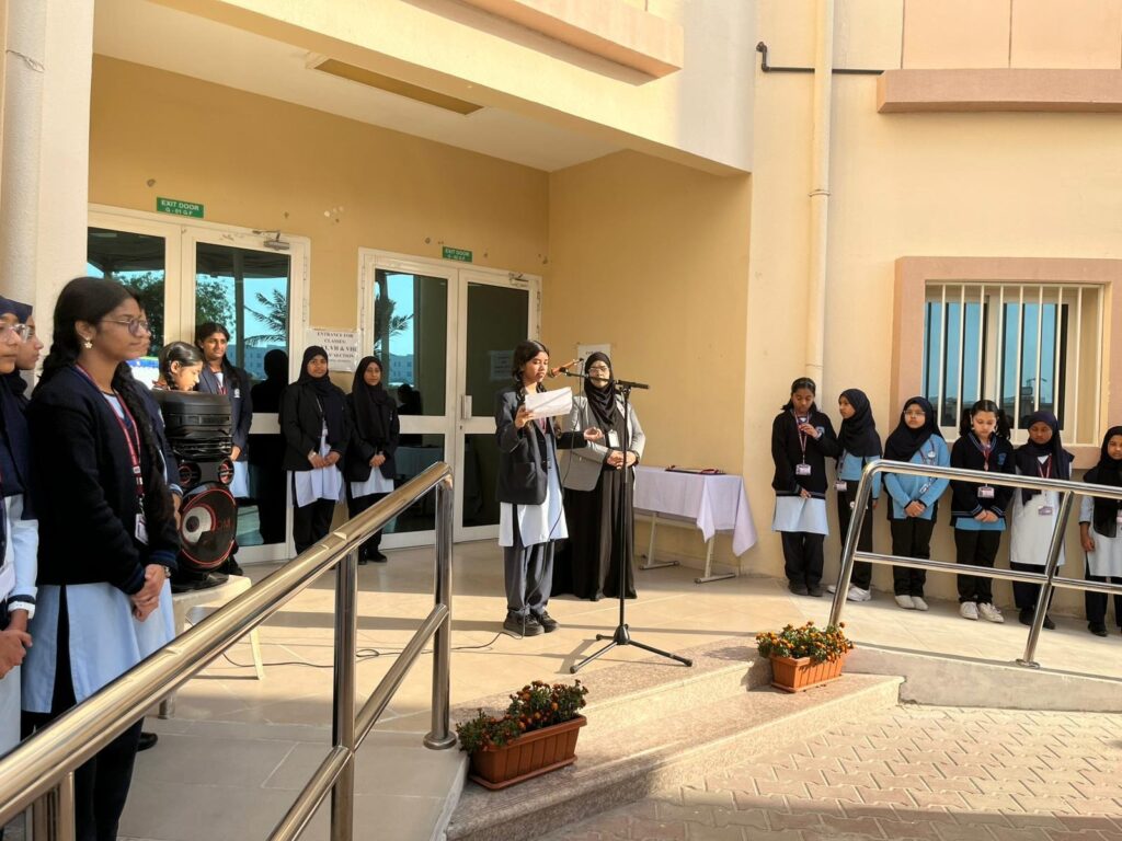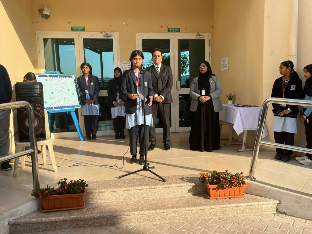 The session began with a prayer by Hajra of class 8 J &, followed by the Speech by Nihira S